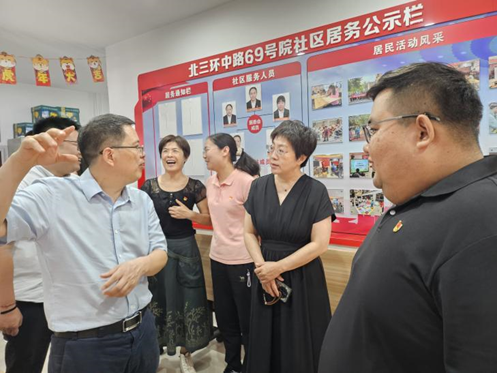 花园路街道办事处的座谈会结束后,花园路街道办事处党工委副书记李江、党群办公室副主任梁微霞与北航太阳成集团122cc党委书记王琪全、副院长陈文博,教师代表张肖阳、牛朝辉一行赴北三环中路69号院社区看望实习学生,并就基层治理经验、社区实习成果进行了深入座谈交流。座谈会由69号院社区党委书记汪洋主持。