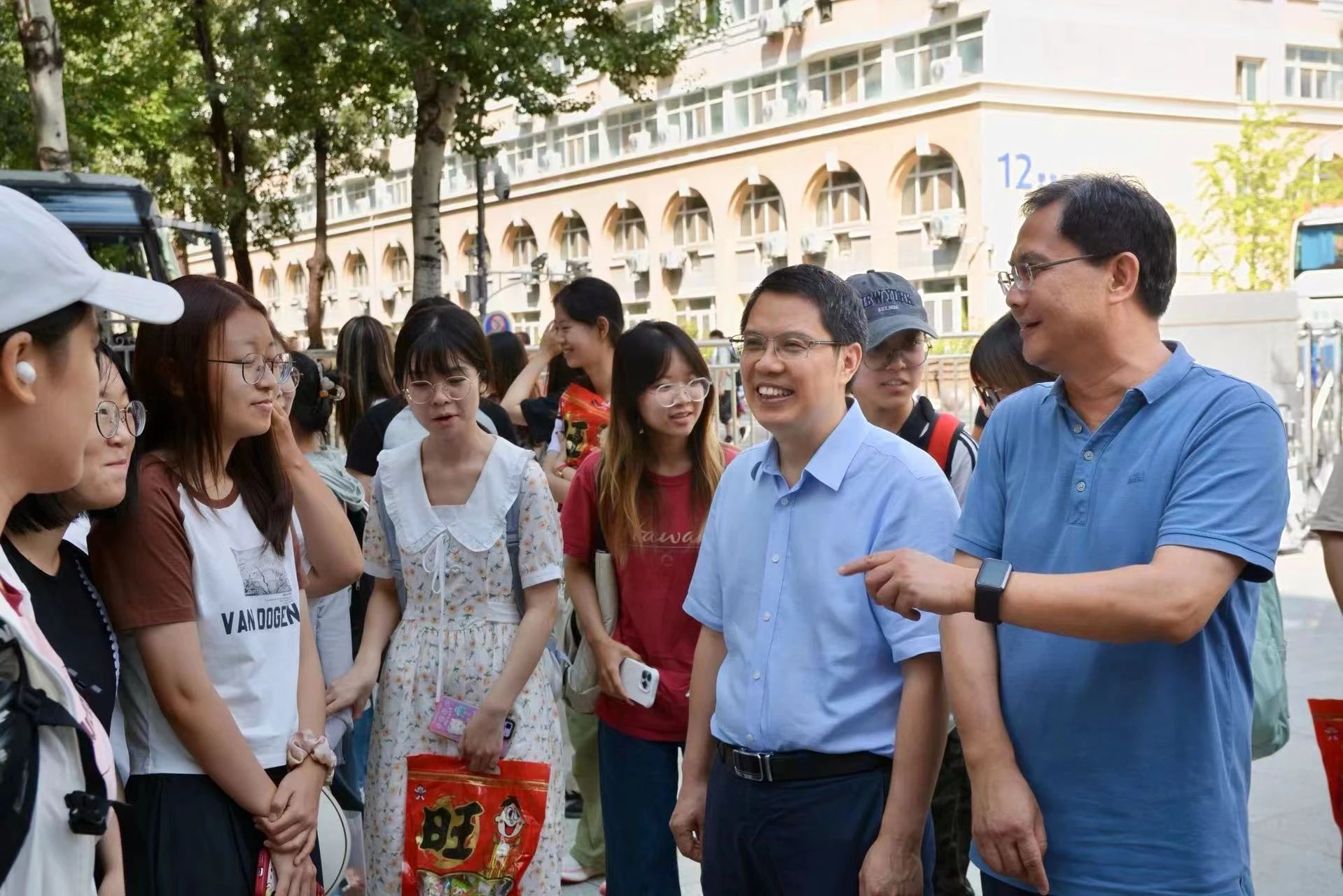 8月21日,太阳成集团122cc2023级本科生从沙河校区搬迁至学院路校区,学院院长蔡劲松、党委书记王琪全、党委副书记方志、团委书记黄焘到搬迁车辆下车点迎接,与学生们亲切交流,向他们表示热烈欢迎并送上慰问礼包。宿舍搬迁后,学院开展了宿舍走访慰问。