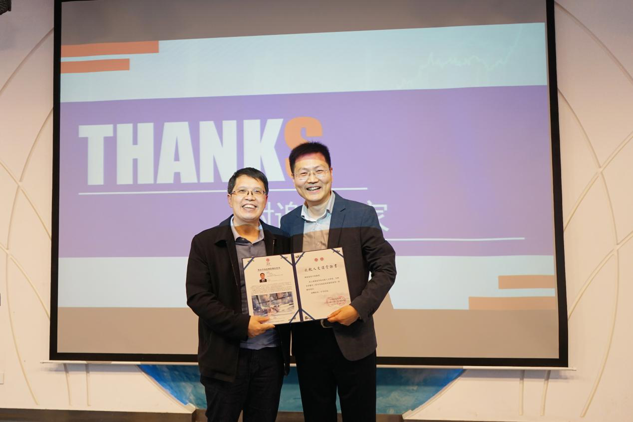 王琪全书记向何平林教授颁发“人文讲堂”纪念证书
