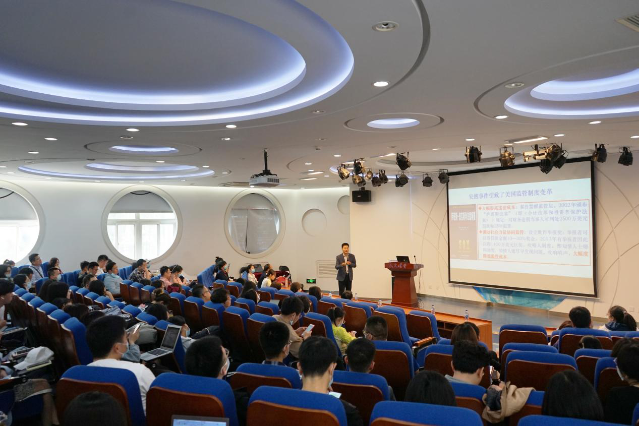 何教授以上市公司虚报财务数据,信息披露造假的事件引出我国当前市场监管存在的问题:对违法者的处罚过于轻松;投资者未受到保护以及当前我国市场将制度建立不完善等。进而,何教授提出讲座思考题:“我国监管制度的短板何在?如何完善现代金融监管体系?”