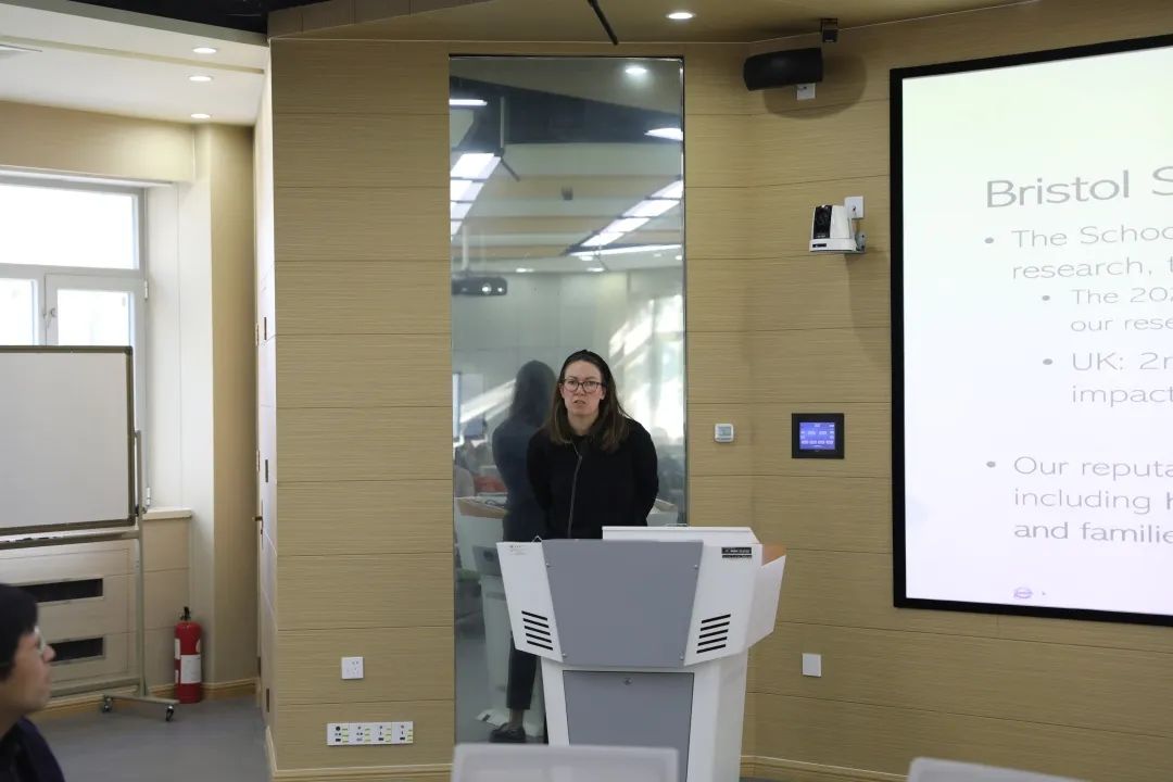 Gabrielle Osborone就北航与Bristol大学的全球交换合作项目关于地理位置、学术环境、校园风光、学位授予、交换方式等方面的信息进行了说明。