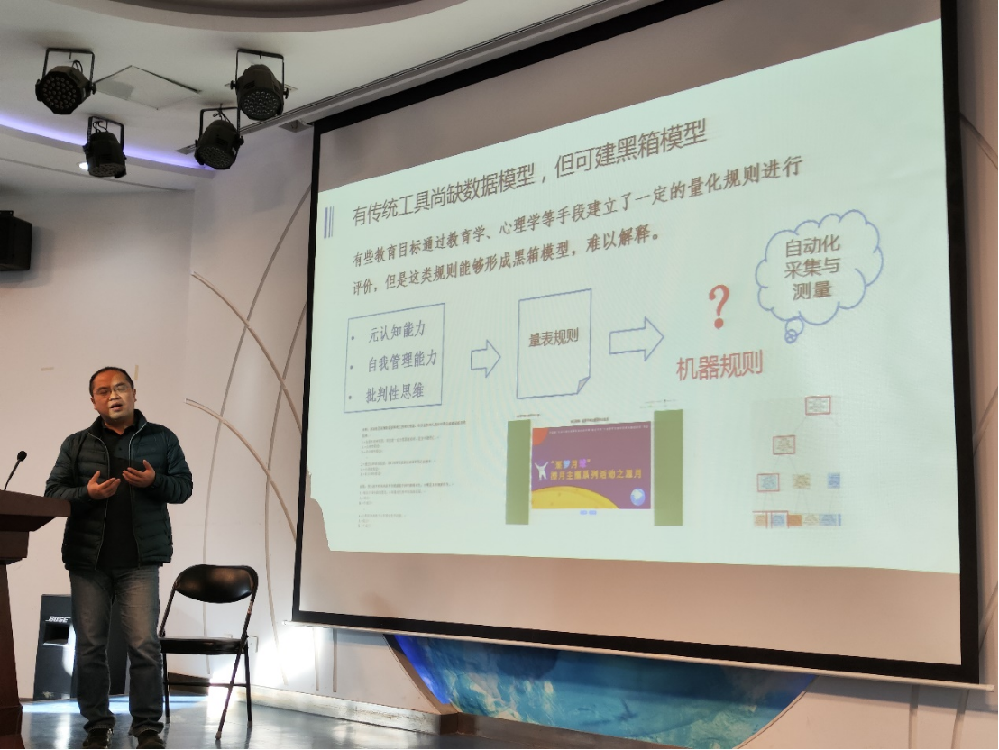 首先,郑教授明确了教育建模的定义,并详细解释了在进行教育建模过程中所面临的挑战——黑箱模型。他深入阐述了教育建模的基本原理,即通过运用机器学习相关的算法模型,分析学生在各个方面的数据,从而为学生推荐合适的学习资源和学习伙伴,以减轻他们的课业压力和负担。