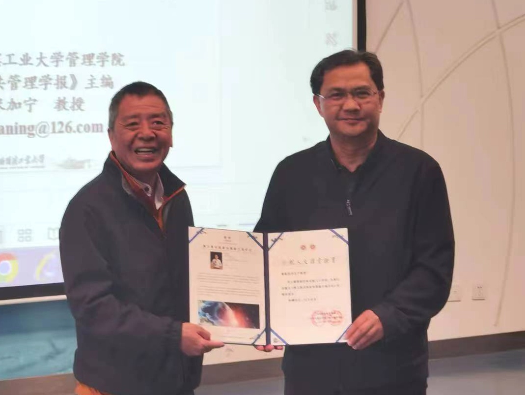 蔡劲松院长代表学院向米加宁教授颁发了“人文讲堂”纪念证书