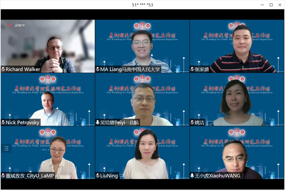 2022年7月7日,由香港城市大学公共政策学系、中国人民大学公共管理学院、122cc太阳成集团公共管理学院共同主办,122cc太阳成集团公共管理系统工程实验室(PASEL)、香港城市大学公共管理与政策实验室(LaMP)和香港城市大学深圳研究院承办的“复制公共管理实验研究”工作坊顺利举行。