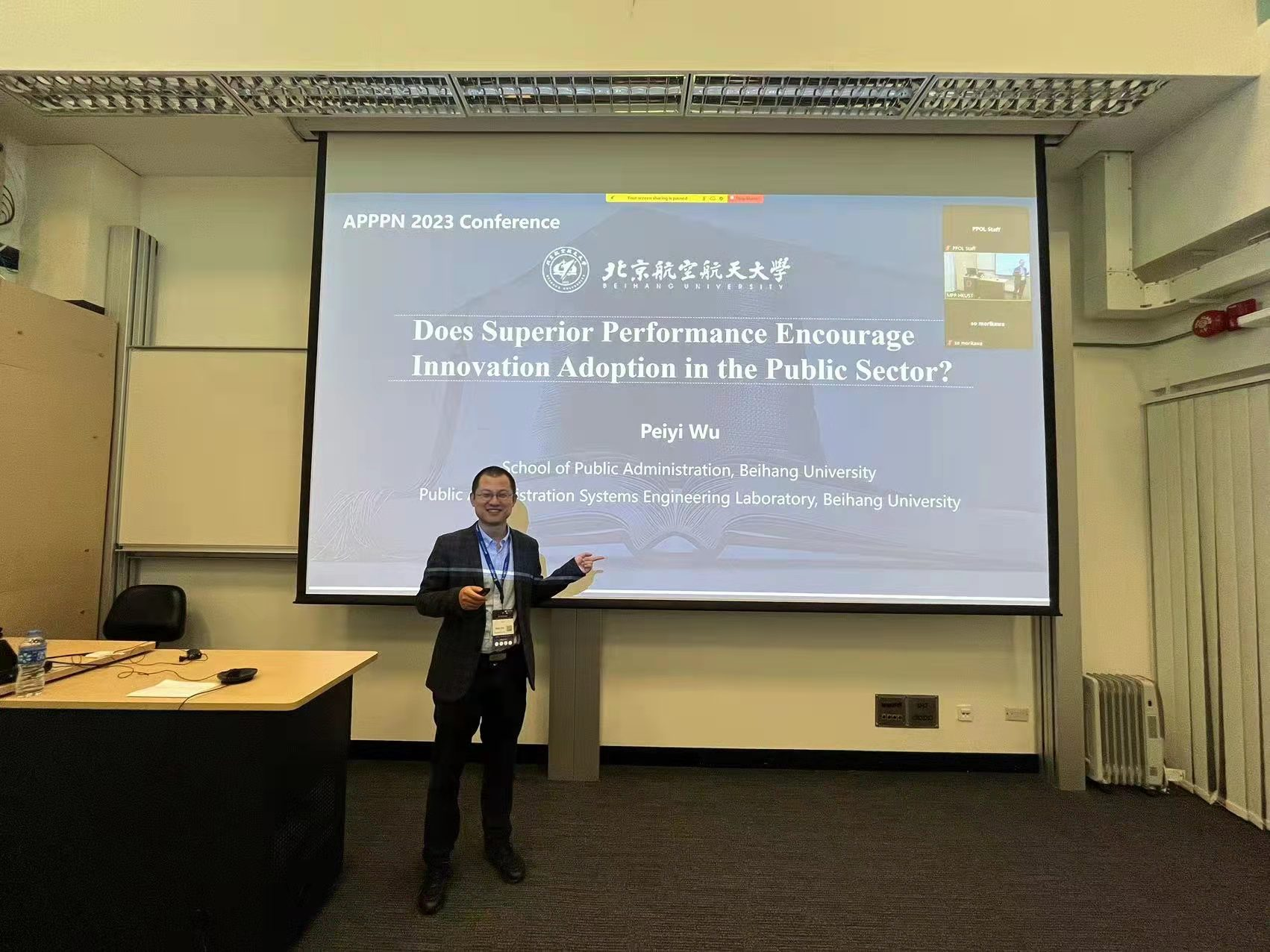 2023年5月31日至6月2日,太阳成集团122cc公共政策与应急管理系助理教授吴培熠赴香港科技大学参加2023年亚太公共政策网络(the Asia-Pacific Public Policy Network,简称AP-PPN)年会,并作了题为“Does Superior Performance Encourage Innovation Adoption in the Public Sector ?”的学术报告。