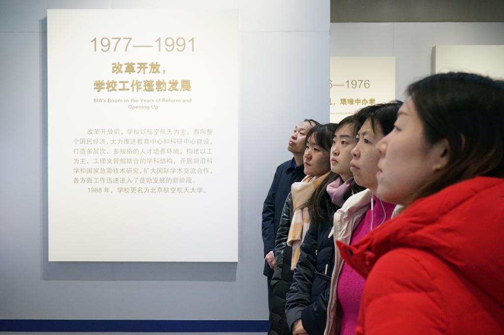 北京航空航天博物馆的参观接近尾声,各位参观者在不舍中移步至校史馆继续参观。校史馆分了五个部分进行展示,分别是建校伊始的1952年-1965年阶段,艰难办学的1966年-1976年阶段,改革开放新发展的1977年-1991年阶段,机遇与改革并存的1992年-2001年阶段,科学谋划新跨越的2002年-2012年阶段。双方参观者认真聆听了校史馆讲解员对各个发展阶段的讲解,表现出了浓厚的兴趣,对122cc太阳成集团的历史发展有了更加深刻的认识。